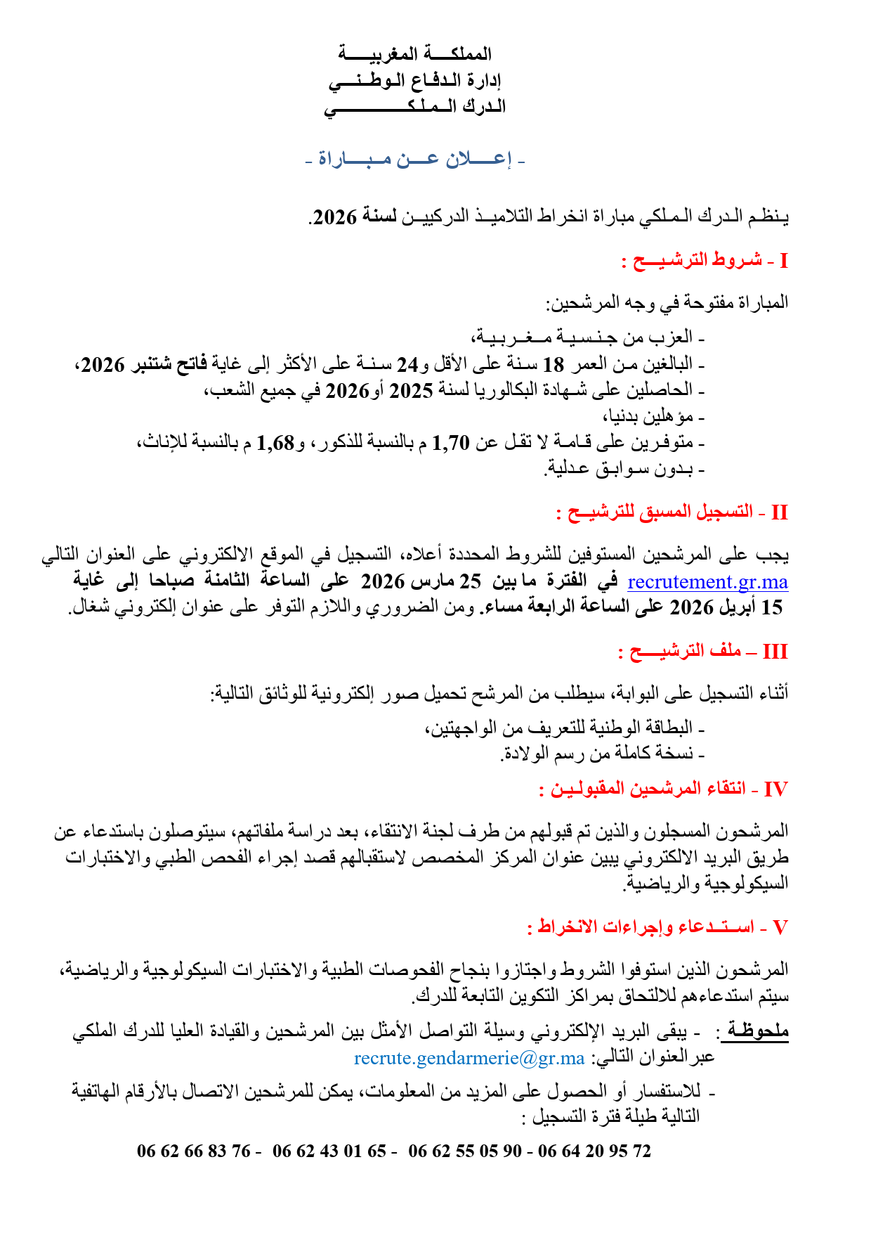 يبقى البريد الالكتروني وسيلة التواصل الأمثل بين المترسحين و القيادة العليا للدرك الملكي عبر العنوان التالي